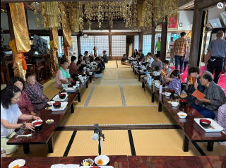 作務(掃除)、小食(朝粥)、住職のお話、茶話会